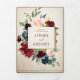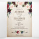 Modèle de carte d'invitation pliable triple pour mariage floral élégant de campagne rustique avec des tons de rouge bordeaux aquarelle, rose blush et marine avec feuillage botanique vert et feuilles d'eucalyptus sur fond en bois. Ce beau design facile à personnaliser peut s'adapter facilement à vos couleurs, styles et thème de mariage et est un choix parfait pour les mariages d'automne, de milieu d'été ou d'hiver. Vous pouvez trouver plus de modèles assortis dans ma boutique ou me contacter si vous avez besoin d'aide pour la personnalisation du design.