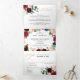 Faire-part pliable en trois parties pour mariage floral classe de campagne rustique rose poudré rouge bordeaux marine avec feuillage botanique vert et feuilles d'eucalyptus sur fond marine. Ce beau modèle facile à personnaliser peut s'adapter facilement à vos couleurs, styles et thème de mariage et est un choix parfait pour les mariages d'automne, de milieu d'été ou d'hiver. Vous pouvez trouver plus de modèles assortis dans ma boutique ou me contacter si vous avez besoin d'aide pour la personnalisation du design.