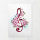 Pink treble clef with delicate, detailed pink Japanese cherry blossoms against white background painted over with light blue paint Blooming pink sakura.