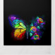 Arc en ciel, papillon monarque lumineux, artistiquement peint avec bouquet de roses irisés, lumineux, lumineux sur arrière - plan noir. Papillon arc-en-ciel.