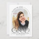 Cette faire-part de graduation minimaliste en noir et blanc présente une photo, un cadre en arc et une élégante typographie moderne.