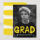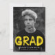 Annonces urbaines et tendance de remise de diplômes photo avec la photo du diplômé avec "Grad" dans un style de peinture aérosol jaune typographie. Personnalisez le front en ajoutant le nom du diplômé, le nom de l'école et l'année de fin d'études. La faire-part moderne de graduation s'inverse pour présenter un design de peinture à aérosol jaune.