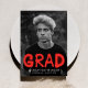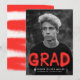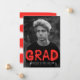 Annonces urbaines et tendance de remise de diplômes photo avec la photo du diplômé avec "Grad" dans un style de peinture en aérosol rouge typographie. Personnalisez le front en ajoutant le nom du diplômé, le nom de l'école et l'année de fin d'études. La faire-part moderne de graduation s'inverse pour présenter un design de peinture à aérosol jaune.