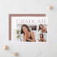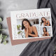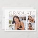 Une carte de faire-part élégante et moderne avec trois photos (une carré et deux horizontales), avec "diplômé" en haut. Personnalisez avec votre année de diplôme, votre nom et votre école le long du côté gauche. Ajoutez un message personnel à l'arrière, ainsi qu'une photo supplémentaire.