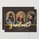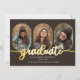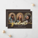 Photos oblongues classiques et uniques design de collage de graduation de 4 photos avec des modèles photo de couleur or et du texte de script "diplômé" de couleur or. Ajoutez le nom du diplômé, l'année de cours et l'école au premier plan avec trois photos et ajoutez une photo séparée et une faire-part complète au dos. Design original par Holiday Hearts Designs avec des photos d'espaces réservés modèles photo avec la permission d'Omid Armin via Unsplash.