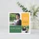 Des blocs de couleur modernes met en évidence deux photos de votre diplômé. Tout le texte peut être customisé à être utilisé comme faire-part d'événements de début (comme indiqué) ou à se transformer en invitation de partie en modifiant le texte à l'arrière pour répondre à vos besoins.