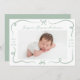 Célébrez l’arrivée de votre petit avec cet élégant faire-part de naissance d’arc vert sauge. L’avant présente la photo horizontale de votre bébé encadrée par des rubans verts à la sauge dessinés à la main et des arcs sur un arrière - plan blanc. Le nom et les statistiques de naissance de votre bébé sont affichés dans un charmant script manuscrit. Le dos montre un collage de trois photos carrés avec espace pour votre message personnalisé, ce qui en fait un beau souvenir personnel pour la famille et les amis.