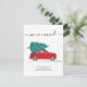 We've Moved Christmas Holiday Moving Announcement featuring a red car and Christmas tree with script and popular typography on white background.