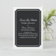 Annonce de mariage moderne et chic avec un design d'emblème de billet noir élégant et la mention 'Save the Date'. Ce design classique et stylé est facile à personnaliser avec vos informations de mariage. Pour plus d'options de personnalisation, cliquez sur Personnaliser.