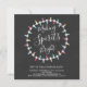 Making Spirits Bright Holiday Party Invitation avec une couronne de noël sur un arrière - plan de tableau noir populaire. Retournez notre invitation unique pour voir un retour correspondant pour une touche spéciale supplémentaire. Invitation de saison idéale pour un quartier se réunir, une fête de bureau, un cocktail de bureau ou une fête de la Saint-Sylvestre,