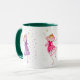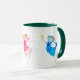 A pretty white coffee mug with a green lip and handle, decorated with fairies from watercolour paintings by Judy Adamson. Matching greeting cards and t-shirts also available.