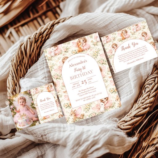 A magical fairy-inspired design created for a dreamy first birthday celebration. Featuring delicate storybook-style fairy girls surrounded by woodland animals, florals, and soft garden details, this design captures a charming enchanted world full of warmth and wonder.
