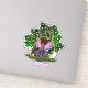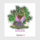 A sheet of 1 clear peel off sticker comprising of a beautiful African American fairy girl with purple and pink wings sitting underneath a vibrant green tree filled with string lights, sakura cherry blossoms and magic fairy dust. She has a pink template below her for your name. Ideal for little girls birthday party favour packs or for school books and lunch boxes.
