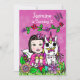 Pretty whimsical fairy tale style black haired Caucasian or Asian girl fairy Birthday invitations with folk art style hand sketched fairies, flowers and butterflies. Purple, pink, red, lime green and all kinds of pretty bright colours!