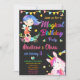 Rejoignez-nous pour un anniversaire magique pour deux filles ! Invitation d'anniversaire de la licorne magique et de la fée Aquarelle Invitation d'anniversaire de la licorne magique Invitation magique pour deux Invitation d'anniversaire de la fée magique. Invitation vos amis avec cette invitation à thème magique arc-en-ciel mignon pour anniversaire conjoint! Cette invitation colorée présente une joyeuse petite licorne, dansant petite fée mignonne aux cheveux bleus, guirlande colorée, quelques fleurs et arcs-en-ciel autour. Modifiez simplement ce modèle facile à utiliser dans le menu Personnaliser pour le rendre spécial.