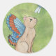 Cute little tan fairy cat with beautiful blue and orange wings watching a dragonfly