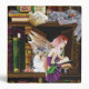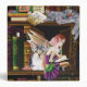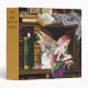 Two kittens and a fairy are sitting in a bookshelves full of books for your magical cat.