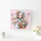 fairy chef wall clock with basket of flowers, chef hat, and kitchen utensil