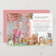 Fairy Forest First Birthday Photo Invitation. Design features photo of the birthday girl, fairy forest icons, gnom, fairies, birds etc and number one in bright shades of pink. Personalize with your party details.