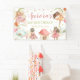 Bannière de fête d'anniversaire pour une fête d'anniversaire à thème de fée avec de petites fées mignonnes et des fleurs avec étincelles et étoiles arrière - plan.
