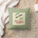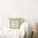 Square throw pillow with a vintage illustration of a green and white hummingbird with a blue-violet head perched on a trumpet vine with coral pink flowers, with an off-white parchment texture background and a delicate light green damask frame and backing.