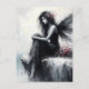 AI generated art of a fairy in a black dress sitting on the edge of a cliff and watching the ocean below her