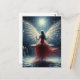 A fairy in a red dress sits on a swing on a full moon night fantasy art