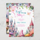 Watercolor inspired Pink Fairy Castle Birthday Invitations