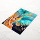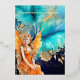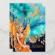 A vibrant real foil print (choose between gold, rose gold or silver) rests against a vibrant watercolor blue, teal and black smoke filled background. An exquisite orange and gold fairy with her wings wide open is sitting in the bottom left corner and has two small golden butterflies flitting around her. She appears to shimmer and shine and has long blonde hair cascading over her shoulder. The back has the same design plus a single template for additional wording, if required. If not, simply clear the template to leave the graphic only. This is ideal for a "fairy theme" birthday, fairytale bridal shower or an enchanted folk ladies birthday party.