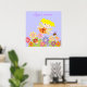 three fairies flit above the flowers. There is a light purple background, and Purple words that can be personalized.