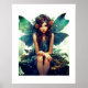 A woodland fairy sitting on a tree trunk in the rain. Fantasy woodland fairy poster.
