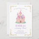 Fairy Tale Birthday Party Invitation, features a magical castle, and gold sparkle details. All the text is editable. Perfect for a Princess or Fairytale theme.