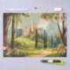 A picturesque illustration of a grand castle perched atop a hill, surrounded by vibrant spring flowers and lush trees. This idyllic scene captures the essence of a magical fairy tale setting, complete with towering spires, scenic pathways, and a tranquil forest backdrop.