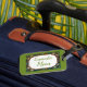Pleasantly surprised at the quality of the luggage tag. It was exactly as shown and my daughter will be pleased. The address label on the back of the luggage tag was neat and clear.