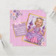 Lilac and Pink Princess 6th Birthday. Mark your child’s special day with this stunning princess-themed card! Featuring a custom caricature, floral accents, and a whimsical castle backdrop, this design is perfect for a magical celebration.