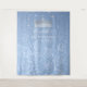 Create your own DIY light blue and silver elegant backdrop tapestries to add sparkle to your special day! Send a big "welcome" as your guests arrive with a large fabric banner/sign... Whether you're celebrating a sweet 16/15 birthday party, fairy tale wedding, floral fiesta, a royal princess bridal or baby shower... these easy DIY template tapestries can make it more memorable. Your friends and family will simply love taking their pictures in front of it! The light blue and silver theme on this floral fabric prop can work beautifully for a Cinderella themed quinceanera or winter wonderland masquerade party as well... The rustic silver design hand illustrated by Raphaela Wilson, features a luxurious pattern of light blue roses, a glamourous silver crown tiara, and faux glitter butterfly confetti. By editing the fairytale design further, other faux metal finishes in gold, rose gold, and baby blue can be revealed. Simply unhide those extra layers, and click on any svg graphics to change them to any custom colour - even the watercolor rose pattern flowers! If you'd like to add an additional Cinderella princess design, there is an optional glass slipper shoe with a silver or gold butterfly you can add. These pretty custom photo backdrops can be easily personalized by you to match your theme colours perfectly. Care to alter the script calligraphy and modern typography? More font styles are at your fingertips as well. Enjoy! Category: custom hanging wall backdrops for parties; fairy tale wedding photo backdrops; and royal baby shower tapestries for boy or girl. Dusty blue and silver wedding theme colours: light blue, baby blue, white, and ice silver.
