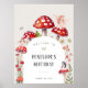 Birthday Welcome Sign featuring an arched frame of watercolor mushrooms and woodland fairies. Customize with your information. Click "click to customize further" to change the font style, size or colour.