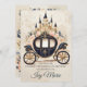 This elegant design features a feminine fairytale castle carriage in navy blue with a princess castle behind adorned with blush pink florals.