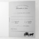 Enchanting fairy tale tri fold wedding invitation with an antique horse drawn carriage and hearts with monogram in a silver grey.