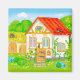 fairytale cartoon house with red roof and patio magnet