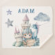 Celebrate the soon-to-be-born knight with this enchanted, storybook themed fairytale Sherpa Blanket in blue colours with castle, dragon and clouds for your Little Knight Boy Baby Shower