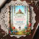 • Set the stage for a magical celebration with these fairytale-themed birthday invitations, featuring a vibrant forest path and a whimsical castle. Perfect for sparking joy and wonder at any child's special day.