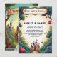 This elegant fairytale-style wedding invitation is perfect for a modern wedding. The retro design features a vintage enchanted forest, a castle illustration, and black calligraphy on a storybook-themed background.
