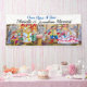 I worked 2 days on revising this precious art to fit (for which, as always, I did pay the extended license fee to legally use it here for you).Change the name to yours. Choose indoor, outdoor, or outdoor with grommets ... and you have a hit on your hands... and .... I am getting ready to post a companion banner (Happily Ever After!). I'll post it in my Wedding Category and several Collections (Wedding / Anniversary .... Banners ....). Thanks so much, and please visit often via my link even if you plan to shop elsewhere. It helps me ... : ) www.zazzle.com/sharonrhea*