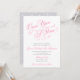 Fairytale "Once Upon A Time" wedding invitations in pink and gray, with beautiful typographic flourishes. Script text reads "Once Upon A Time" in pink, with a star design on the backer.