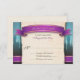 Cartes de réponse RSVP de mariage Fairytale conçues avec une bannière violette et or et les mots "La faveur d'une réponse...", des châteaux au loin sur un dégradé bleu à marron, et votre mariage RSVP détaille sur une illustration de texture papier vintage beige en lambeaux. Ces cartes de réponse RSVP ont été conçues pour correspondre :