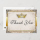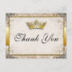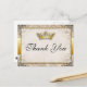 Fairytale Wedding Thank You Postcard. Featuring regal royalty colours of gold and silver and pearlescents. This classy and sophisticated fairytale wedding thank you postcard is great for any theme wedding or black tie wedding. Bringing a touch of elegance and charm you will send greetings to your guests in utter style with this fairytale wedding thank you postcard for all your guests. Has faux pearls and diamonds on the flourishes that are in the corners. A royal crown sits in the bottom right adorned with gold and jewels. A filigree illustration sits atop a vintage background and an ornate border holds the ornate paper textured middle. Matching products can be found in the wedding section of my store.