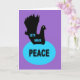 Cette carte excentrique a été conçue pour être remise à un ami ou à un être cher après une rangée, pour dire pardon et leur remettre un sourire sur le visage. Le design présente une silhouette noire d'une colombe fantaisie à oeil blanc, assise sur un nid en forme d'ovale bleu avec le mot paix écrit en noir au centre du nid et les mots permettent de faire au-dessus du nid, en texte bleu, sur la colombe elle-même. La carte a un arrière - plan violet. Cette carte a été laissée en blanc afin que vous puissiez ajouter votre propre salutation spéciale. Pour ce faire, cliquez simplement sur le bouton "customiser". Ici vous pourrez ajouter votre texte en utilisant une gamme de polices et de couleurs. Vous pouvez également modifier la couleur arrière - plan de la carte.