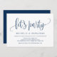 Cette carte d'invitation au design de calligraphie moderne (faisons la fête) est parfaite pour votre annonce/ célébration de mariage en fuite. Ajoutez vos détails avec une police/ lettrage assortie en bleu marine.