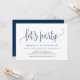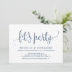 Cette carte d'invitation au design de calligraphie moderne (faisons la fête) est parfaite pour votre annonce/ célébration de mariage en fuite. Ajoutez vos détails avec une police/ lettrage assortie en bleu marine.